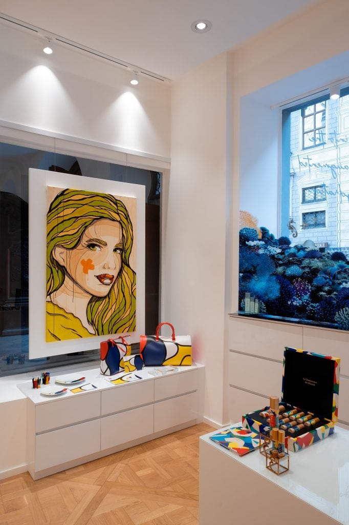 Eine besondere Rolle spielte in der Maison auch die Kunst. Didier Guillon, Präsident der Valmont-Gruppe und Gründer der Valmont Foundation, kuratierte für den Münchner Standort eine Auswahl zeitgenössischer Werke. Abstrakte Positionen, Street Art und handwerklich geprägte Arbeiten standen in einem spannenden Dialog und verliehen den Räumen eine kulturelle Dimension. Kunst war hier nicht bloß Dekoration, sondern Teil einer Atmosphäre, in der Ästhetik aus unterschiedlichen Perspektiven betrachtet wurde.