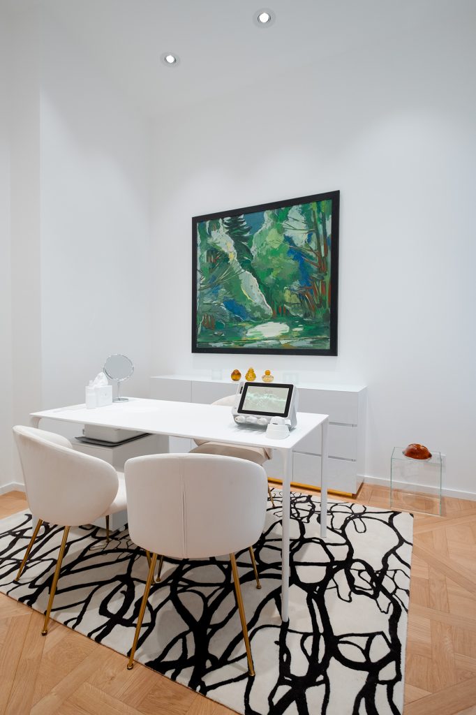 Im Mittelpunkt standen individuell entwickelte Valmont Treatments, die auf die Bedürfnisse der Haut abgestimmt wurden. Grundlage bildete eine moderne Hautanalyse, auf deren Basis maßgeschneiderte Pflegeprogramme entstanden. Regeneration, Schutz und sichtbare Ausstrahlung standen dabei im Fokus. Eine zentrale Rolle spielte die Linie L’Elixir des Glaciers, die für ihre Kombination aus seltenen Pflanzenextrakten und hochentwickelten Wirkstoffen bekannt ist. Die Behandlungen fanden in zwei diskreten Behandlungsräumen statt, die bewusst auf Ruhe und Konzentration ausgerichtet waren und ein Gefühl von Rückzug mitten in der Stadt vermittelten.