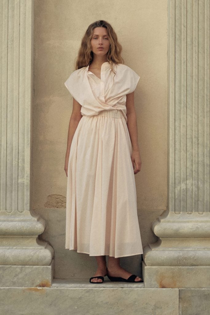 Auch die Silhouetten folgen dieser zurückhaltenden Haltung. Die Linien sind klar, die Proportionen bewusst reduziert. Feminine Formen wirken entspannt, Layering bleibt unkompliziert. Stricktops, leichte Röcke oder luftige Pullover lassen sich mühelos kombinieren und entwickeln ihre Wirkung gerade durch diese scheinbare Einfachheit. Es ist eine Garderobe für den Alltag, die gleichzeitig zeitlos genug ist, um über einzelne Saisons hinaus Bestand zu haben.