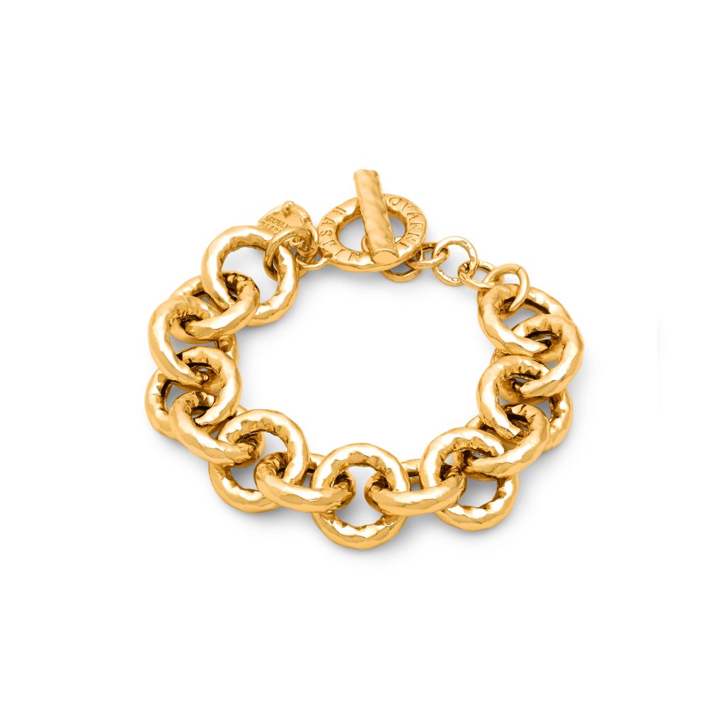 Charakteristisch ist die bewusste Entscheidung für Unregelmäßigkeit. Hämmerungen, Meißelspuren, leichte Unebenheiten – sie sind keine Makel, sondern Signatur. Raspini sucht gezielt den Moment, in dem das Werkzeug auf Metall trifft. Jeder Schlag verändert die Oberfläche, bricht das Licht neu, erzeugt Reflexe, die sich beim Tragen bewegen. Gold wirkt dadurch lebendig, fast atmend. Kein makelloses Finish, sondern vibrierende Struktur.